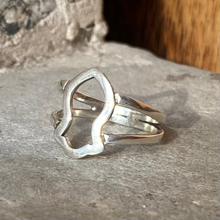 A unique handmade sterling silver band crafted by a master silversmith in Türkiye, using traditional methods passed down through generations. This ring features the shape of the sandal of the Prophet Muhammad (peace & blessings be upon him and his family). The band is shaped and polished entirely by hand, giving every ring a character all its own.